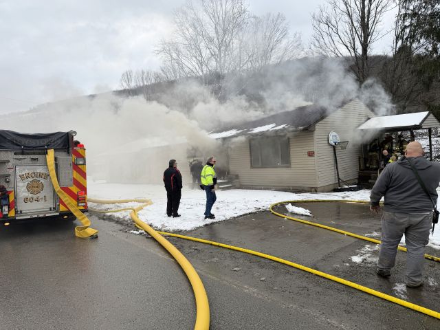 11:22am Station was disatched to assist Hooversville with a house fire located at 1193 Whistler Rd in Blough Quemahoning Twp. Rescue-Engine604 responded and was the first arriving fire unit and found heavy smoke coming from the house. Crew was advised that no one was living there currently. Other departments assisting Hooversville Fire on scene were Northern Regonal Fire, Jerome Fire, Shanksville Fire and Conemaugh Twp EMS. Tanker604 also responded. 26-64